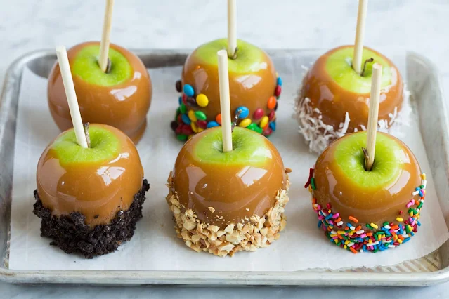 Caramel apples are perfect for personalization. Here are some popular toppings: